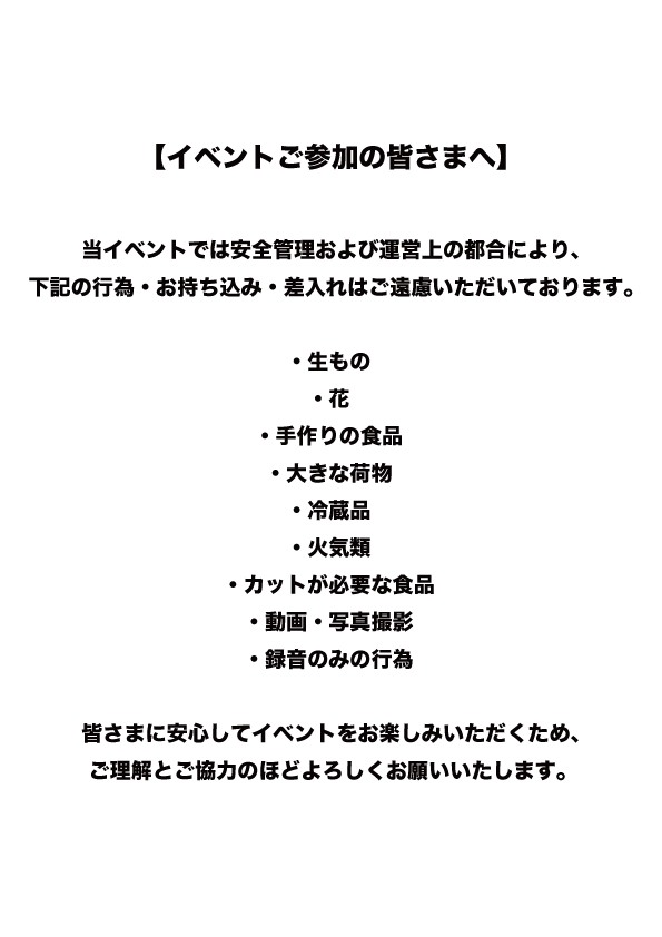※整理番号順の入場となります。店頭へのお電話、出演者へのお取り置きはありませんのでご留意ください。